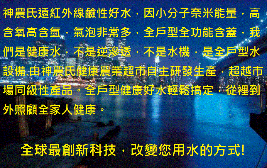 全世界第一台:全戶型--神農氏遠紅外線小分子鹼性能量水 |